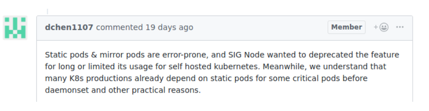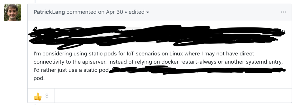IoT and Edge deployments are newer cases that I haven’t seen in the wild yet, but may benefit from static pods.