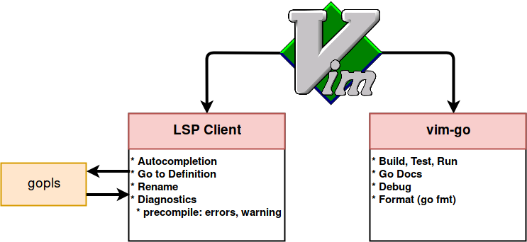 vim-go. Note thatgoplswas installed. Your LSP client will point to this binary. -